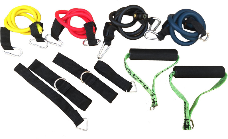 Conveinent product for Overall body workout. Latex bands helps in aerobic, yoga & many other exercises. This kit best feature is that you don't need to buy any individual complete band if you need all 4 level buy this kit. It will save you money. This kit has 4 level of Resistance Tube + 2 Handles + 2 Knee / Ankle Straps + Door Anchor. All comes packed in carry bag.