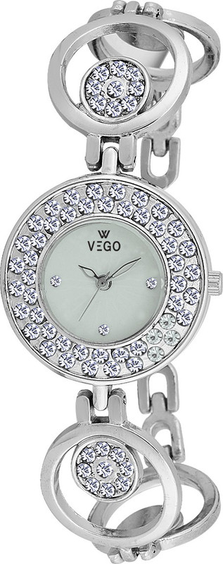 Vego presents this silver coloured analog watch for women's. this watch featuring a round dial and stainless steel strap will keep your wrist at easy for whole day.this attractive design must have in your collection