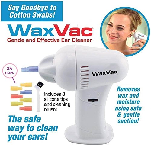 WaxVac Ear Cleaner is the safe and effective way to clean your ears. The gentle suction draws dirt particles and moisture out of the ear canal. The unique safety guide prevents the tip from entering too far inside the ear canal. Features a powerful examining light and disassebles for fast and thorough cleaning. It's cordless design makes it convenient for traveling. Say goodbye to cotton swabs forever! Health Concern: Ear Wax Material: Silicone, Plastic Care and Cleaning: Wipe Clean Battery: Required: 2 AA (Not included)