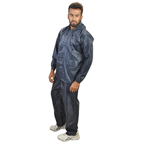 Type: Rainsuit a coat & a pant Material: Polyester Sleeve: Full Sleeve Drawstring hooded neck For men Closure: Zip Colour: Blue