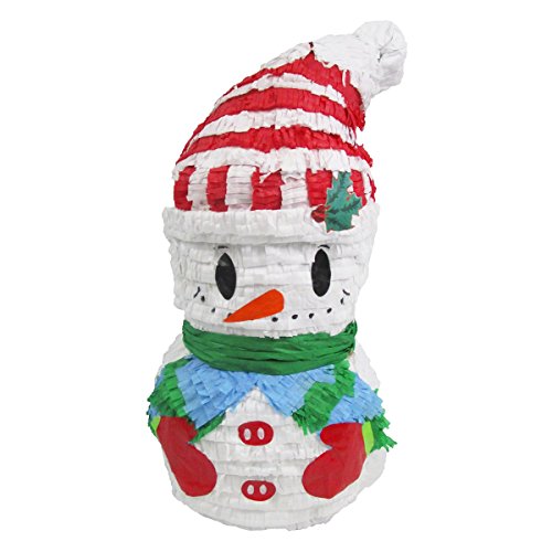 3D handmade Snowman Pinata makes a unique centerpiece that may be used as candy holder and party game as well! This Christmas Pinata is 21" tall by 10" long by 10" deep and holds up to 2 lb of toys and candy (sold separately). Snowman is dressed with fringe-cut tissue paper and features colorful hat, scarf and mittens. Beautiful decoration for Christmas parties at home, the office or the classroom. Comes with strong cable tie to hang pinata and opening for adding fillers.